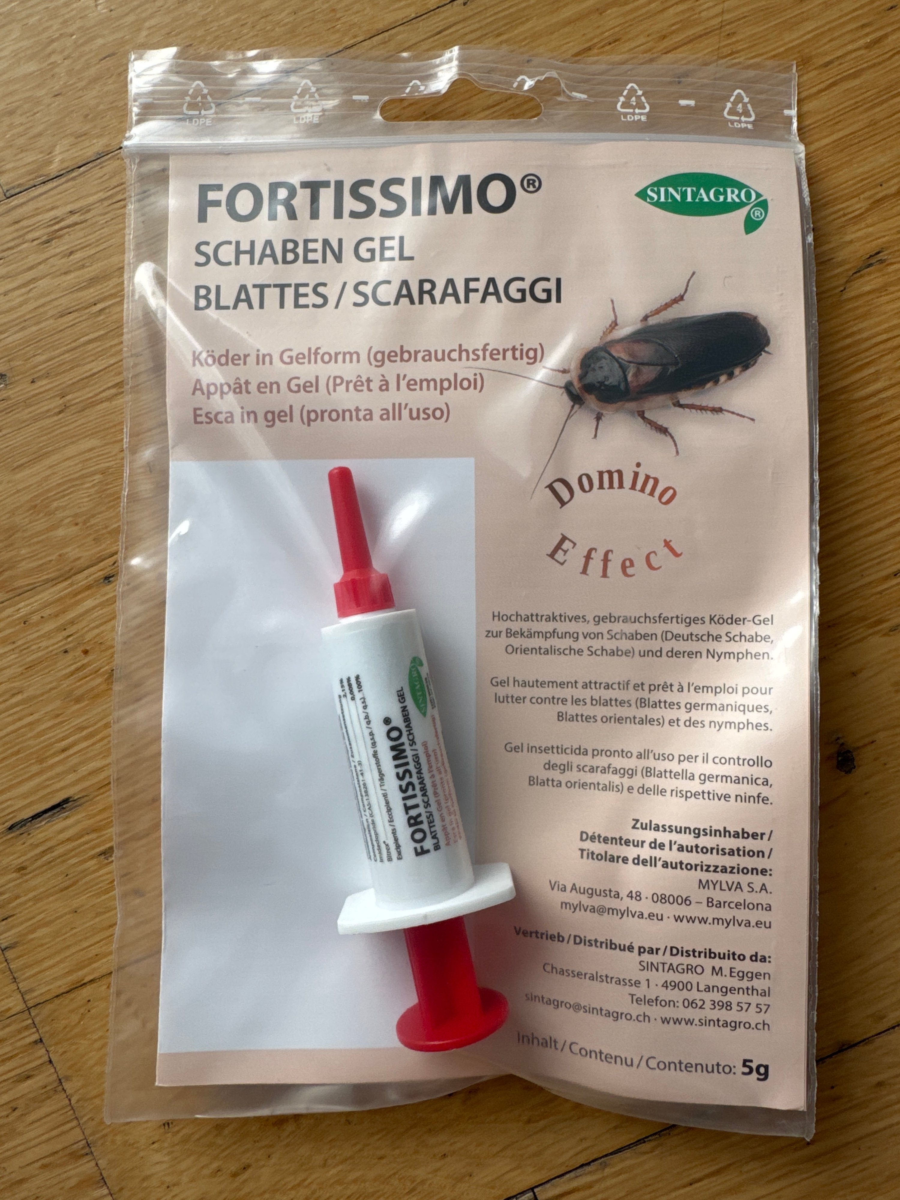 FORTISSIMO Schaben-GEl - ein neuer attraktiver und gebrauchsfertiger Gel-Köder gegen alle wichtigen Schabenarten. speziell entwickelt zur Bekämpfung der Deutschen, Orientalischen und Amerikanischen Schaben.
